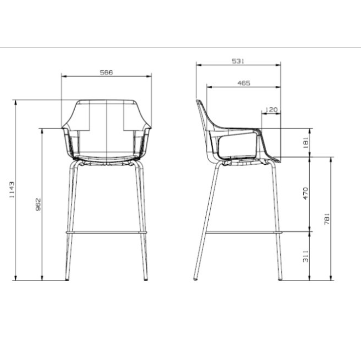 Modelo: Kit 4 unidades Banqueta Vesper 4 Pés com Braços