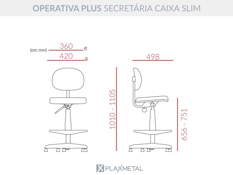 Cadeira Caixa Operativa Secretária Plus (SEM Costura) Plaxmetal Couro Ecológico Preta Sem Braços