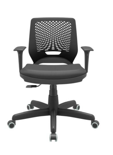 Com visual moderno e acabamento sofisticado em material sintético (couro ecológico) preto, ela valoriza o ambiente e entrega conforto para longas jornadas de trabalho.