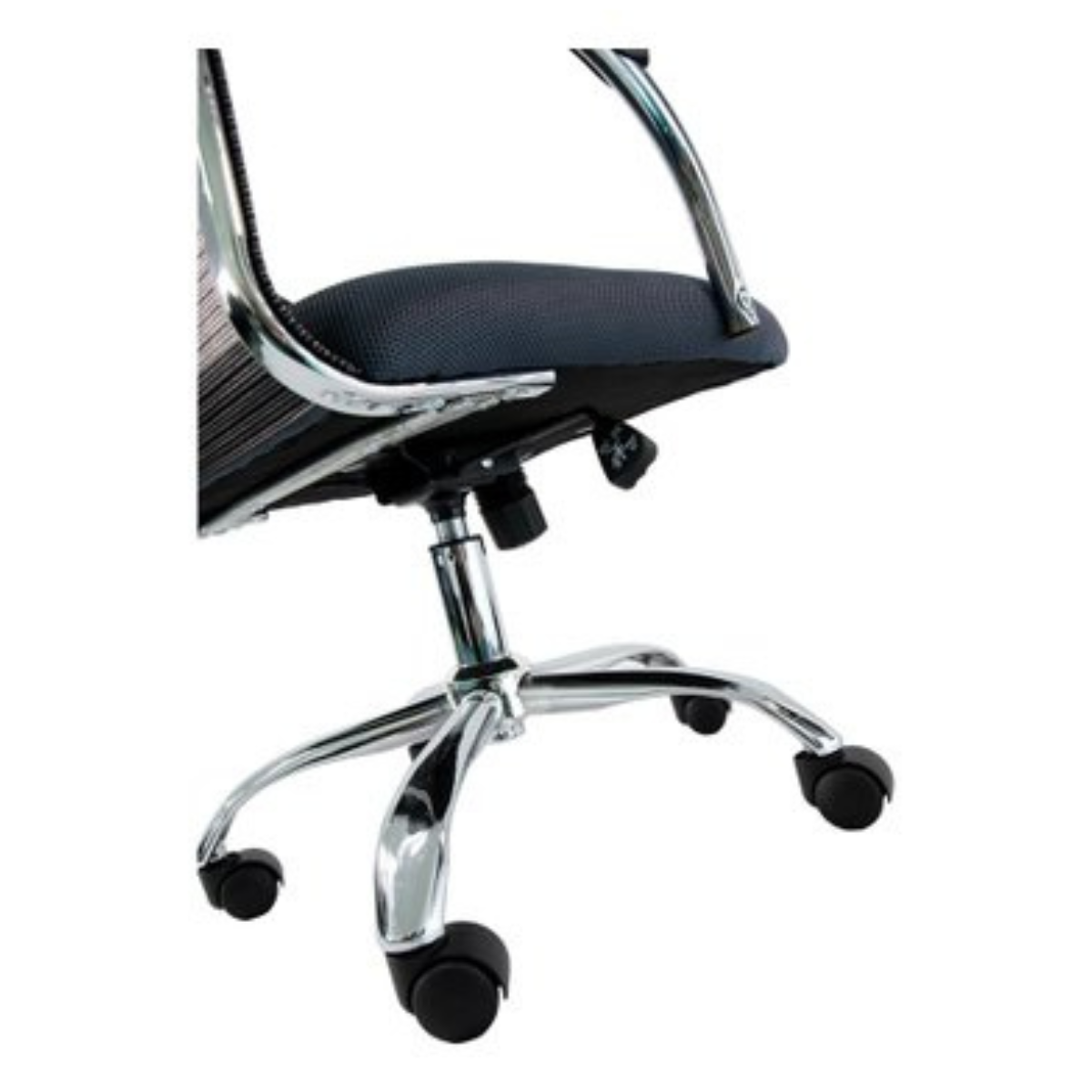 Encosto em tela; função relax; estrela cromada; pistão a gás cromado;