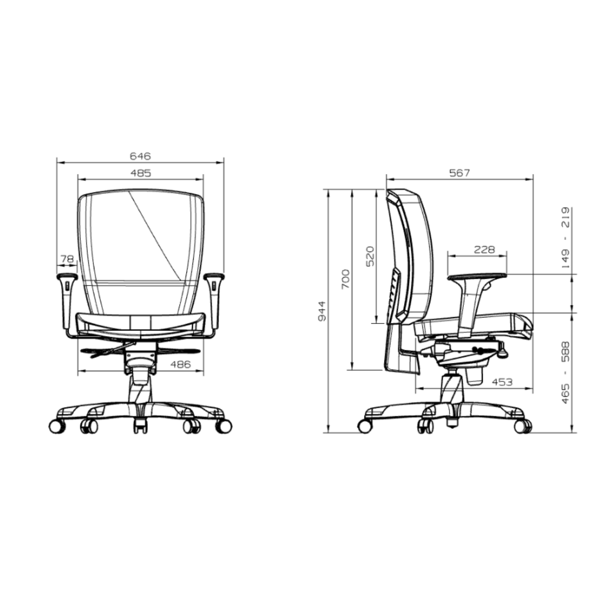 ✔ Braços com regulagem de altura (1D)