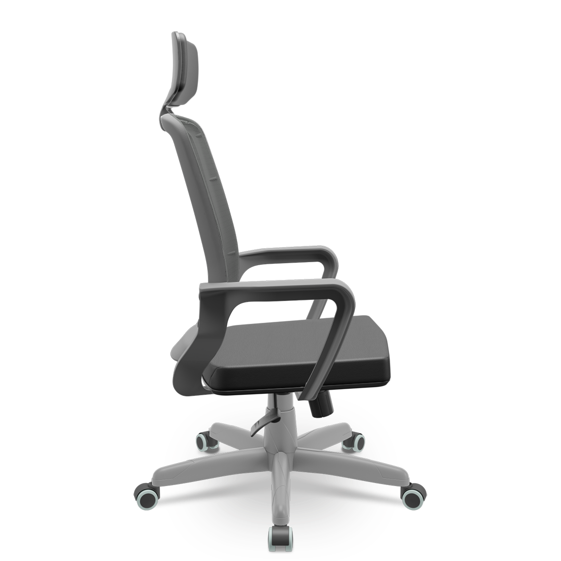 Apoio de Cabeça: Apoio de cabeça fixo com lamina de espuma e revestido com tecido Vinil (Material Sintético) na Cor Cinza.