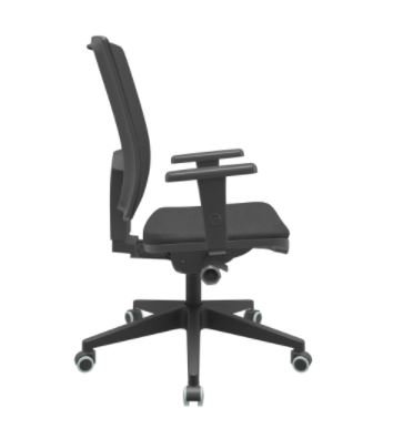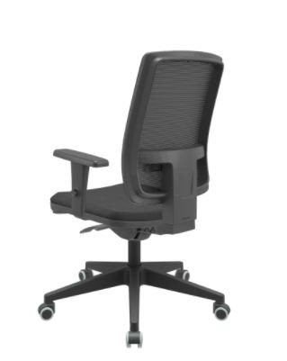 Encosto: Estrutura de sustentação externa constituída por uma estrutura fabricada em Polipropileno reforçado com fibra de vidro e uma moldura fabricada em ABS (Material Termoplástico com alta resistência mecânica), revestimento em tela 100% poliester tensionado na cor PRETA. Regulagem de ajuste na altura do apoio lombar em 9 posições distintas que percorrem um curso de 40 mm.
