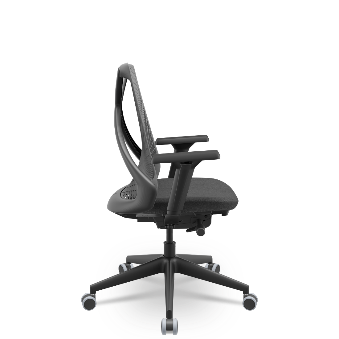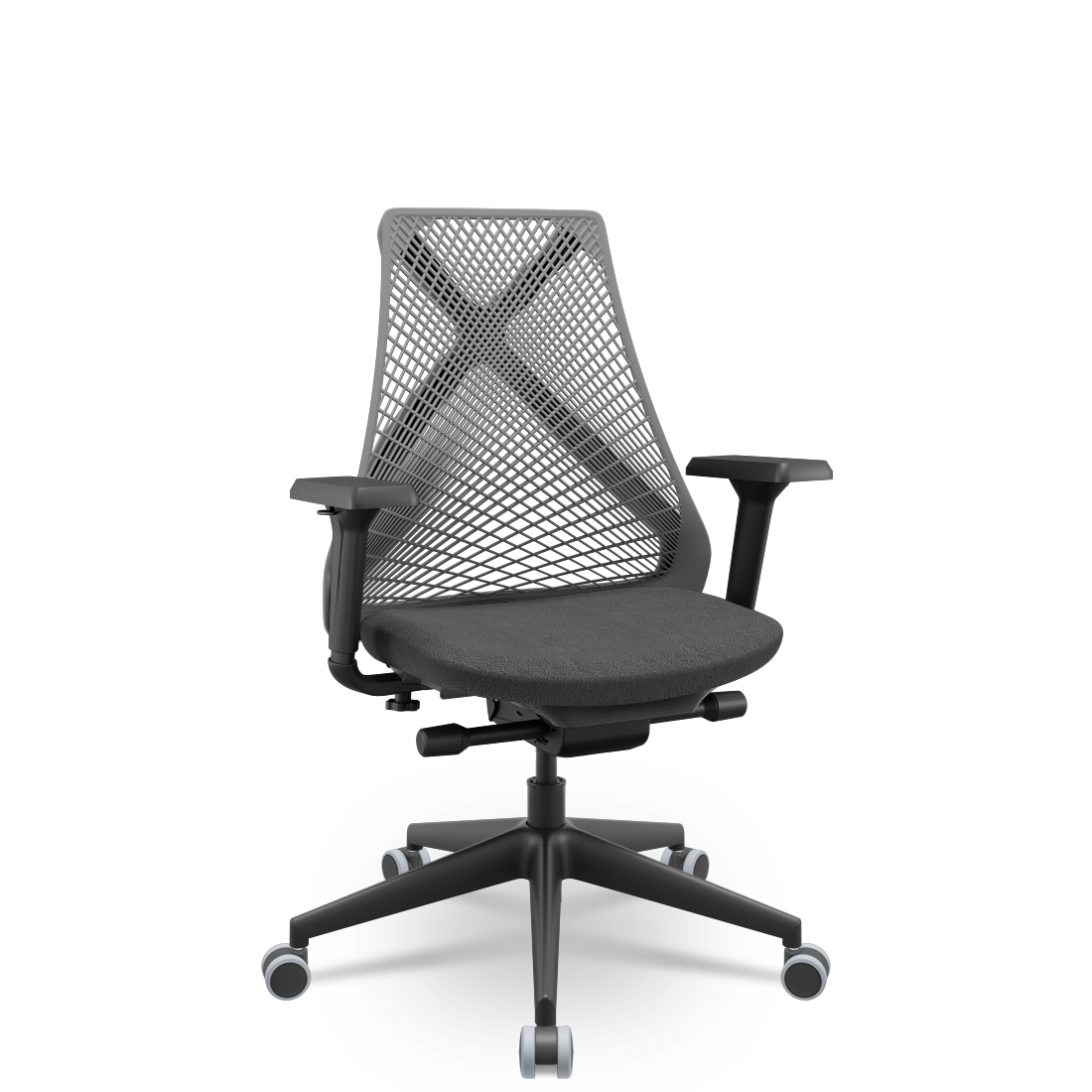 Cadeira Escritório Presidente Tela Bix-X+ Preta Autocompensador Slider Braços 4D Shift Plaxmetal Encosto Cinza e Assento Poliéster Cinza