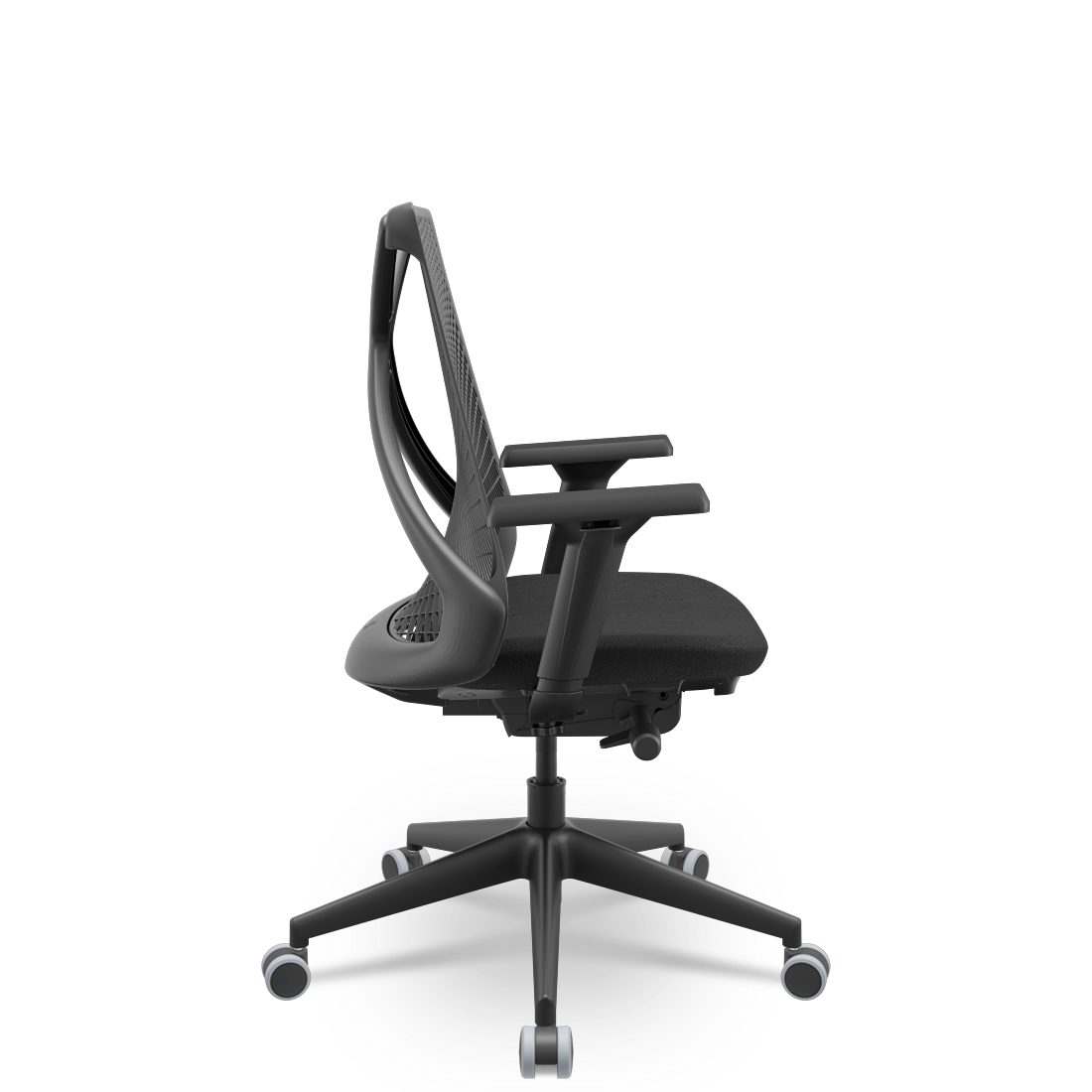 Cadeira Escritório Presidente Tela Bix-X+ Autocompensador Slider Braços 4D Shift Plaxmetal Preta Assento Poliéster Preto