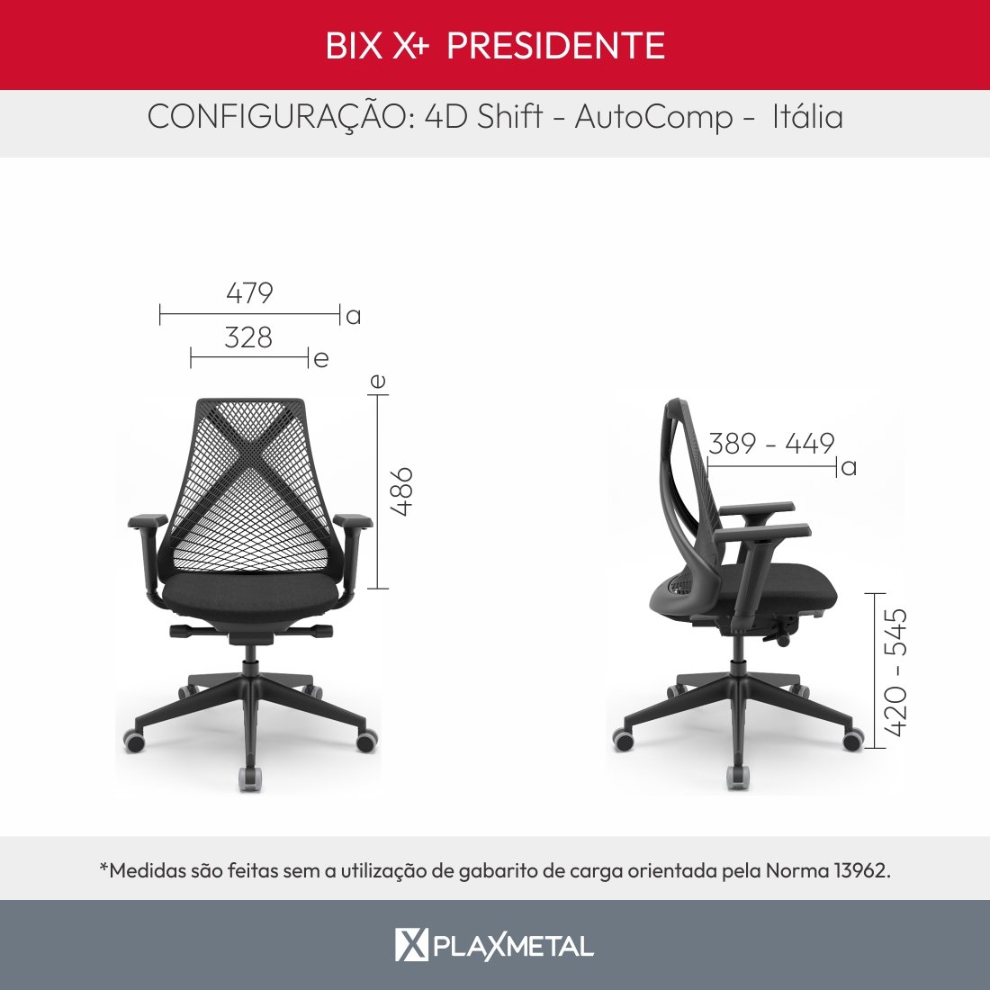 A Bix X+ é a soma dos elementos de tecnologia, flexibilidade dinâmica e confortabilidade. Sua configuração foi desenhada para equilibrar inteligência tecnológica nos seus principais elementos, apresentando mecanismo e base ergonômicos, materiais inovadores, qualidade e tendências modernas. É a fusão perfeita entre design, tecnologia, forma e função.
