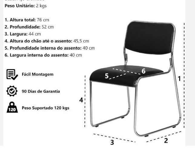Altura do encosto: 40 cm