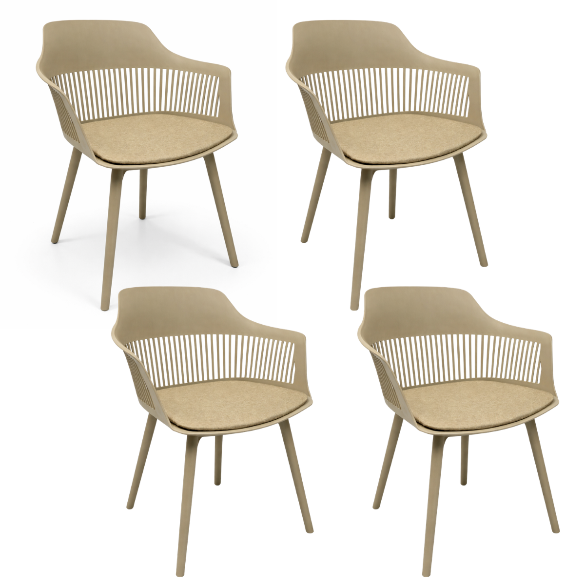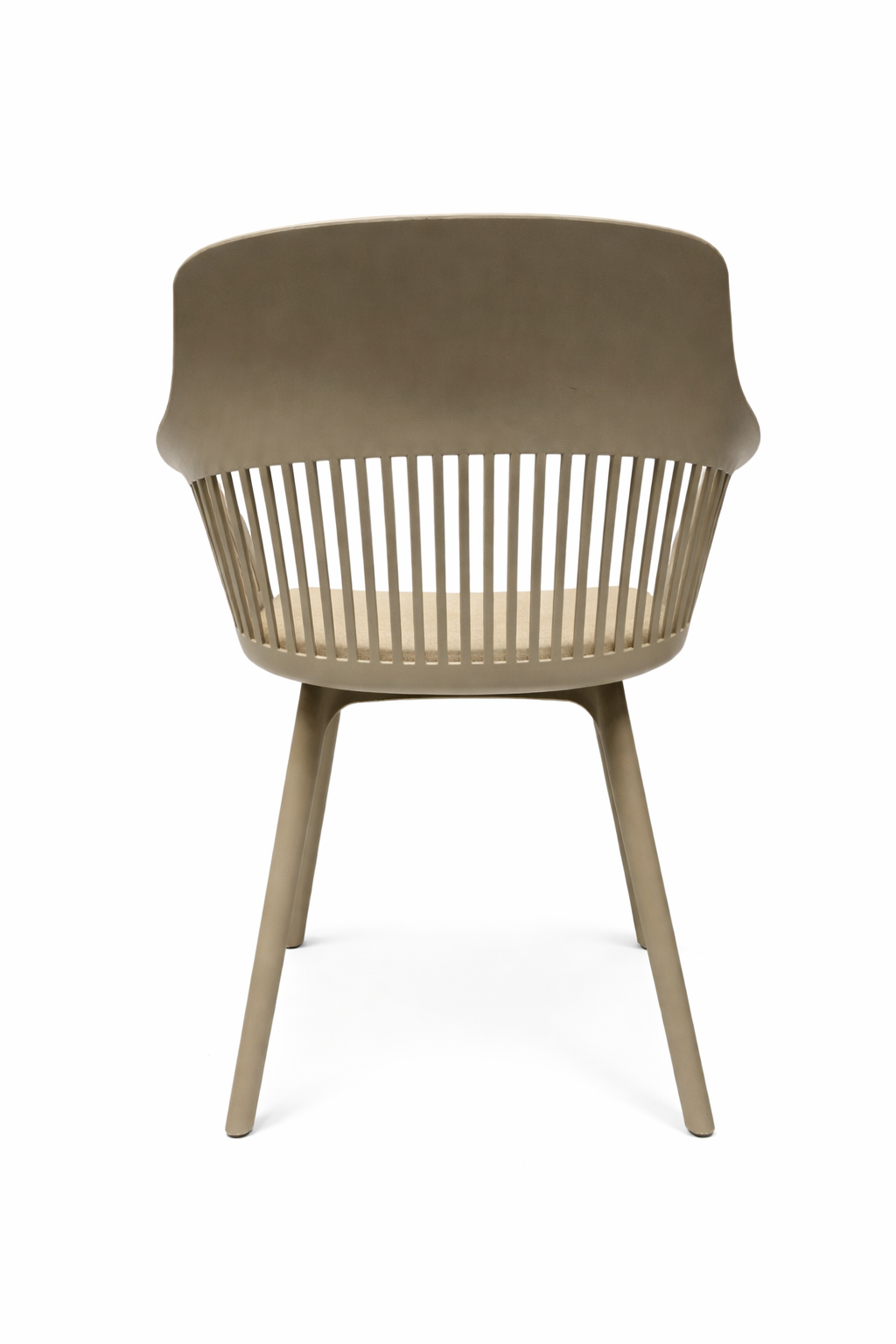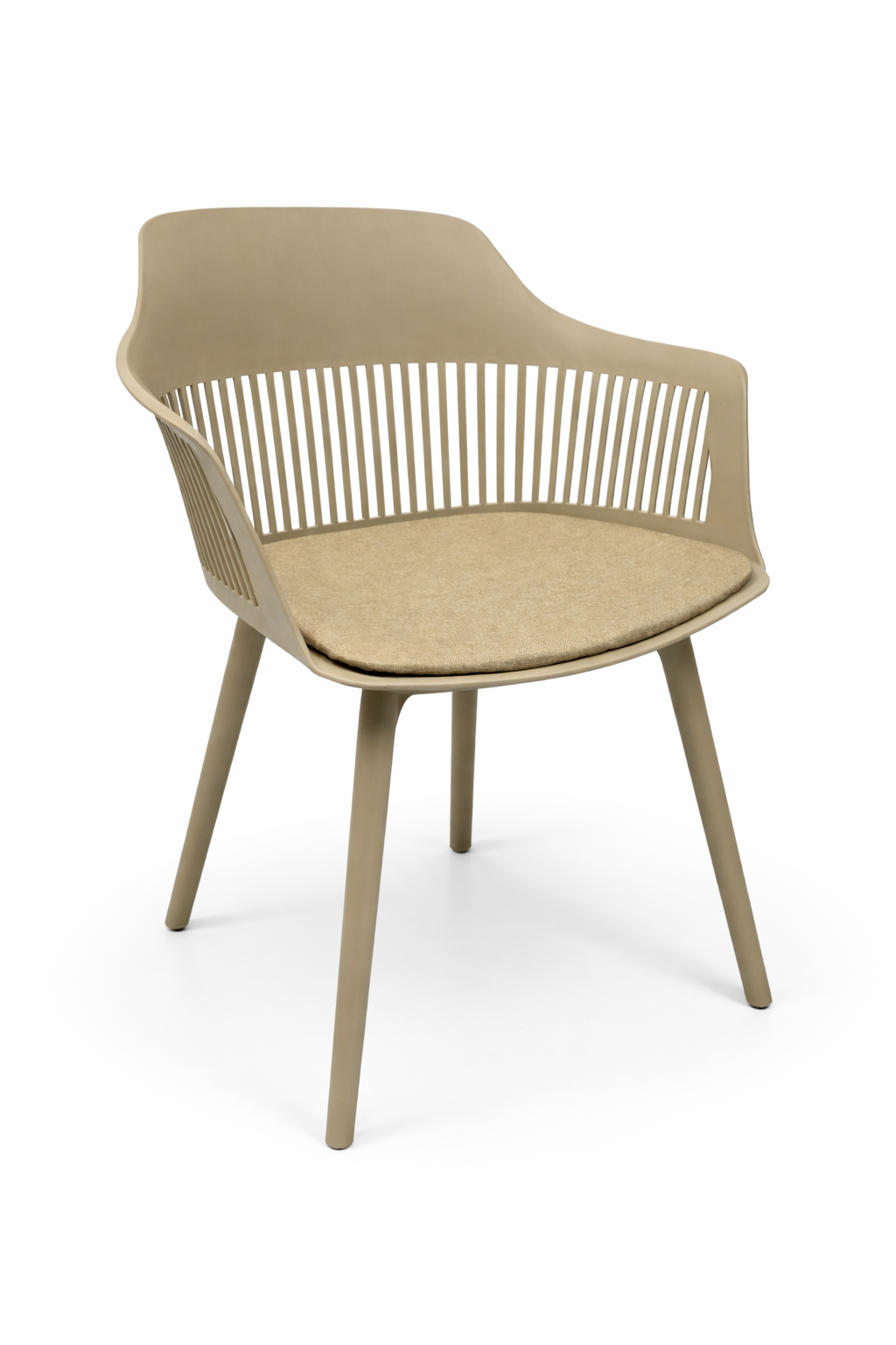 Seu encosto vazado confere leveza visual e ventilação, enquanto o assento acolchoado proporciona maior comodidade para o uso diário. É uma cadeira versátil, ideal para salas de jantar, áreas gourmet, varandas cobertas, cozinhas, recepções e ambientes comerciais.