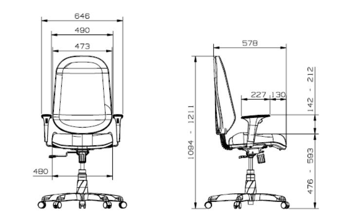 A Cadeira Operativa Presidente possui encosto com espaldar alto, contra capa plástica no assento e encosto.