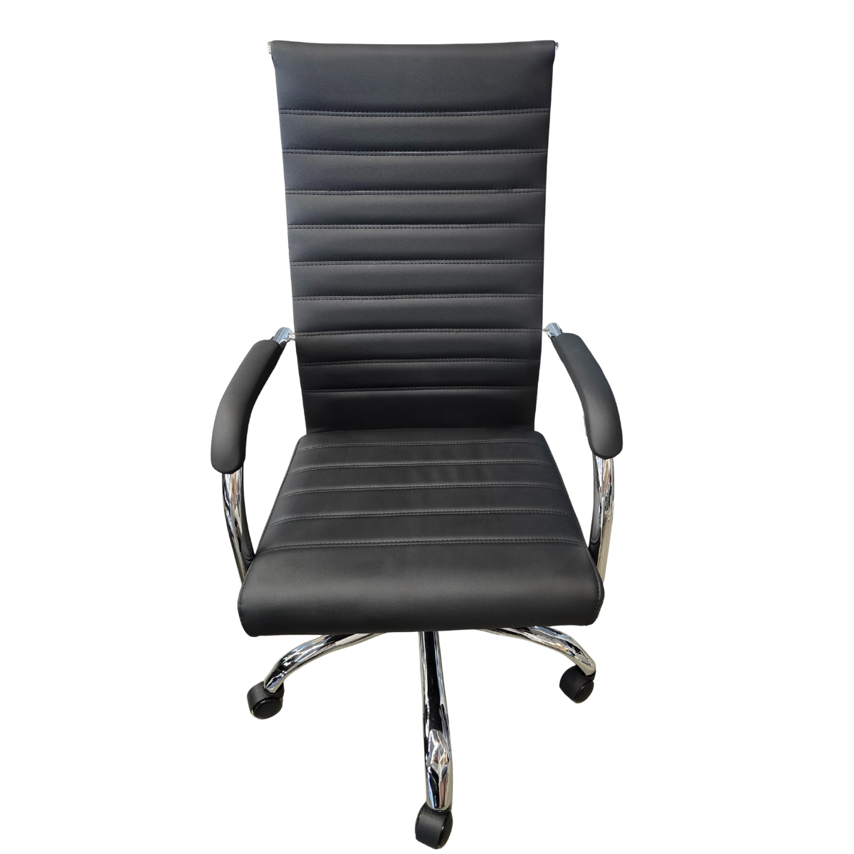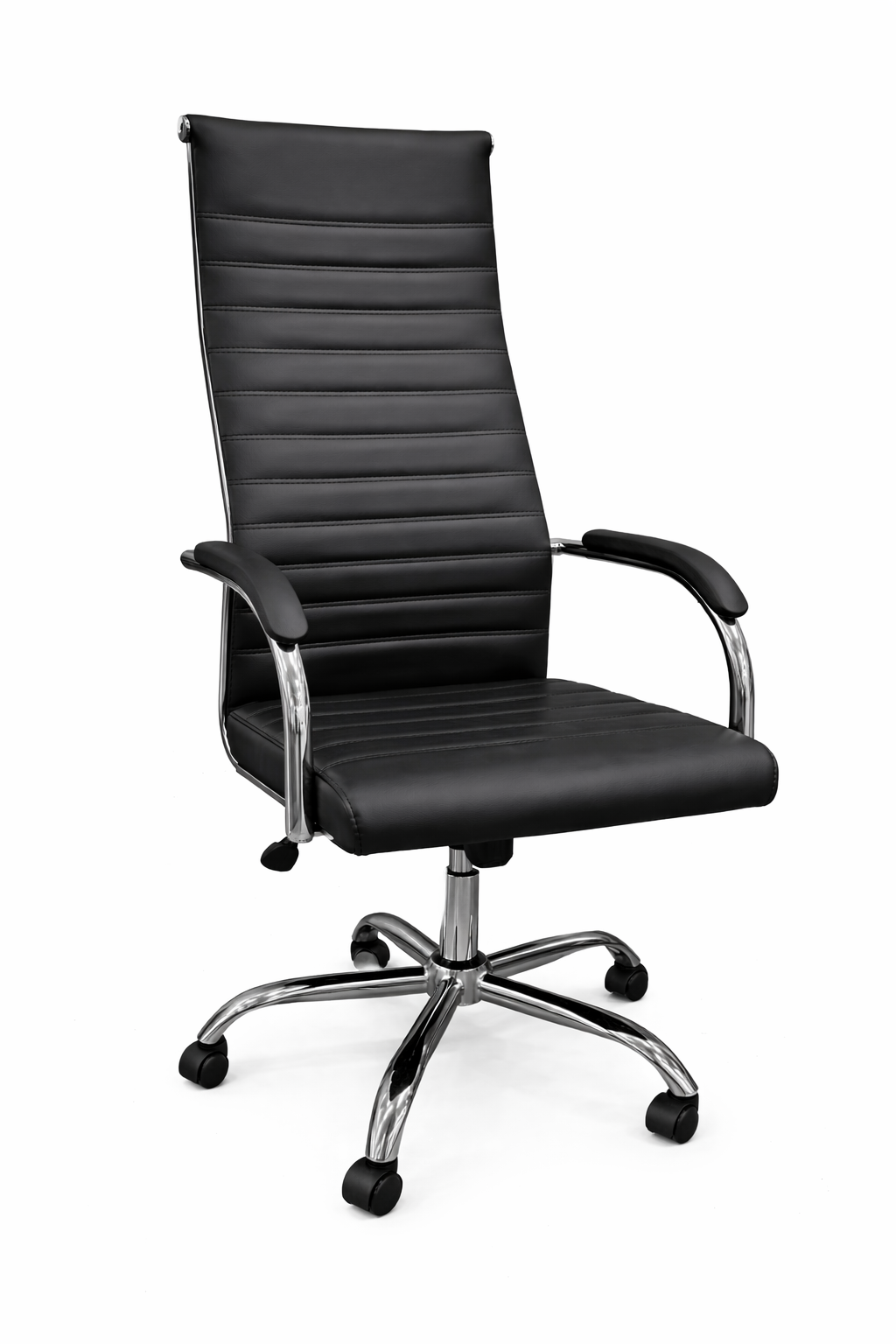 Cadeira Presidente Esteirinha Florença – PU Preta | Base Cromada com Rodízios