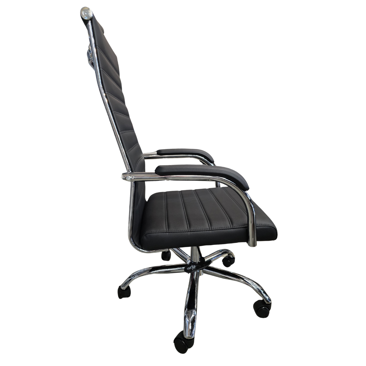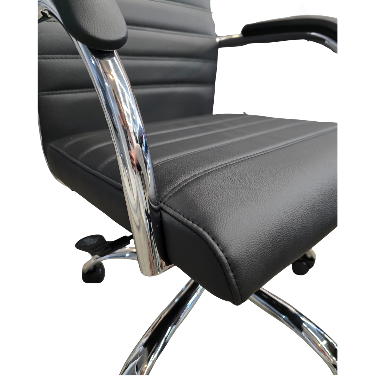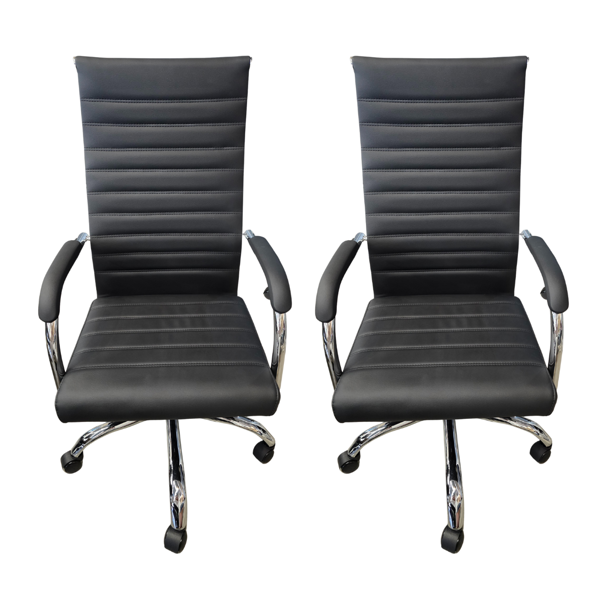 Cadeira Presidente Esteirinha Florença – PU Preta | Base Cromada com Rodízios – Kit 02