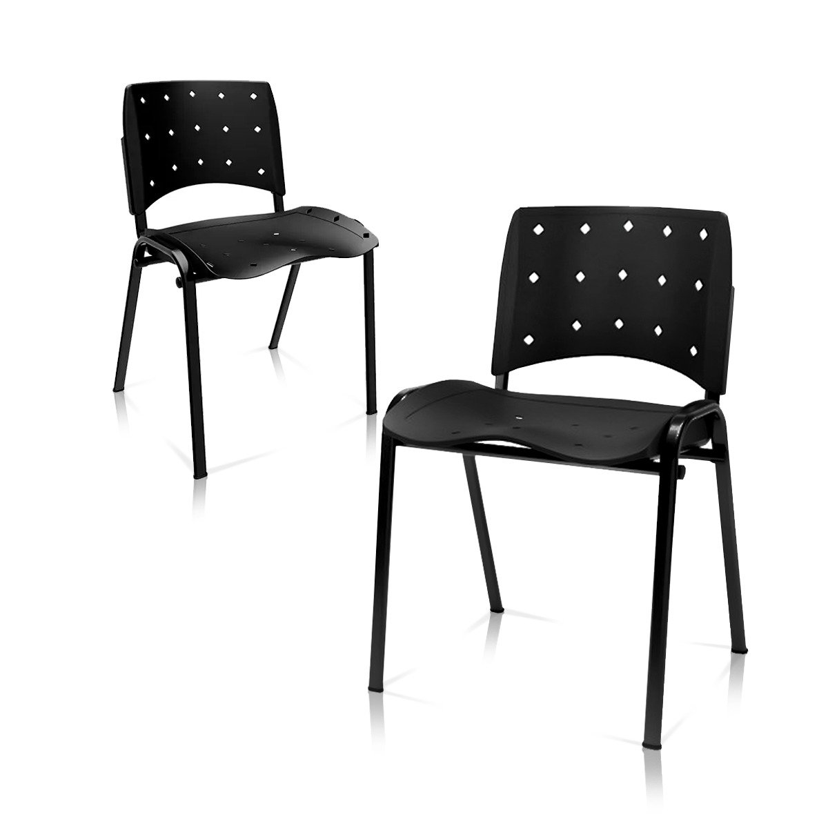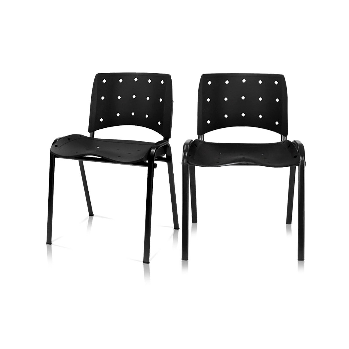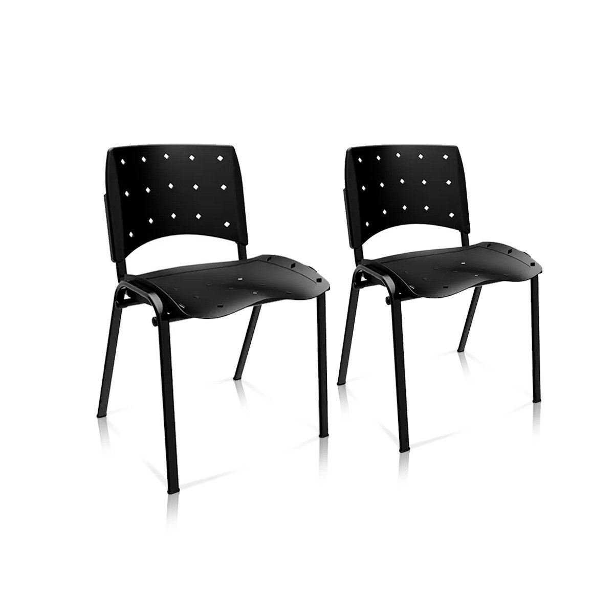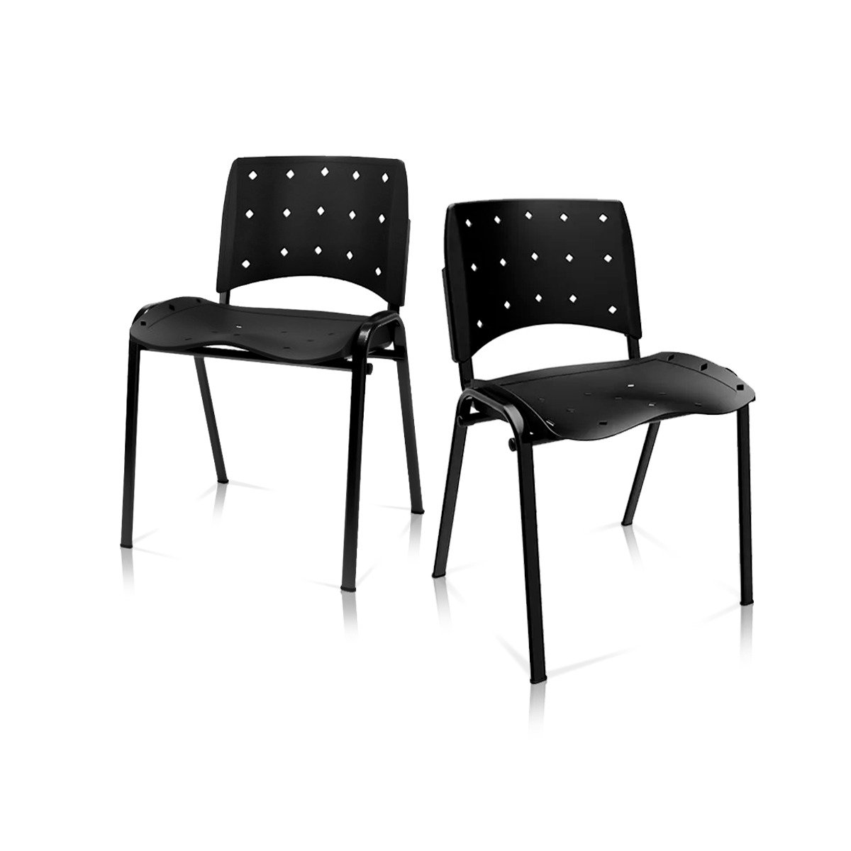 Ergoplax Kit 02 Cadeiras Fixas Aproximação Empilhável Plaxmetal Preta