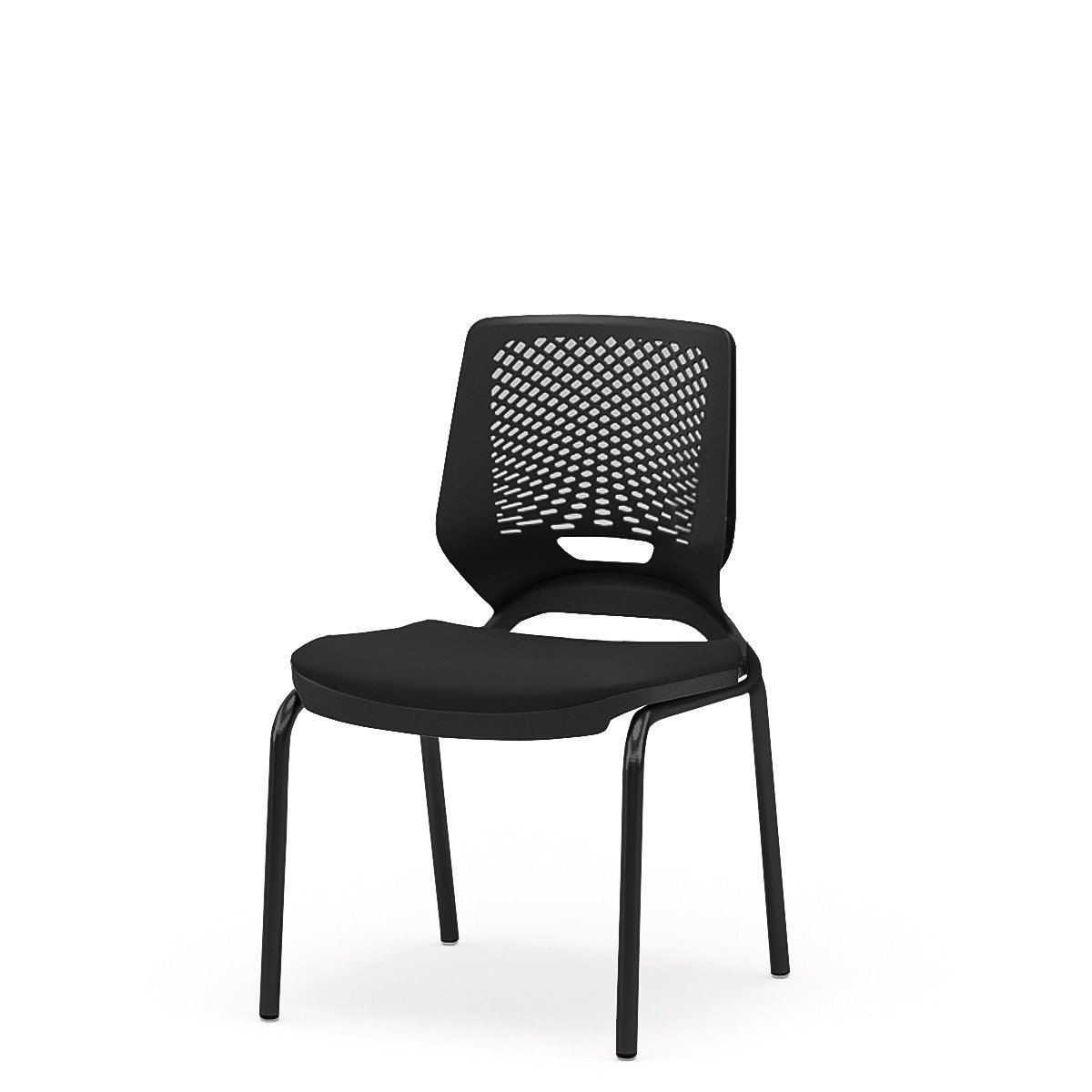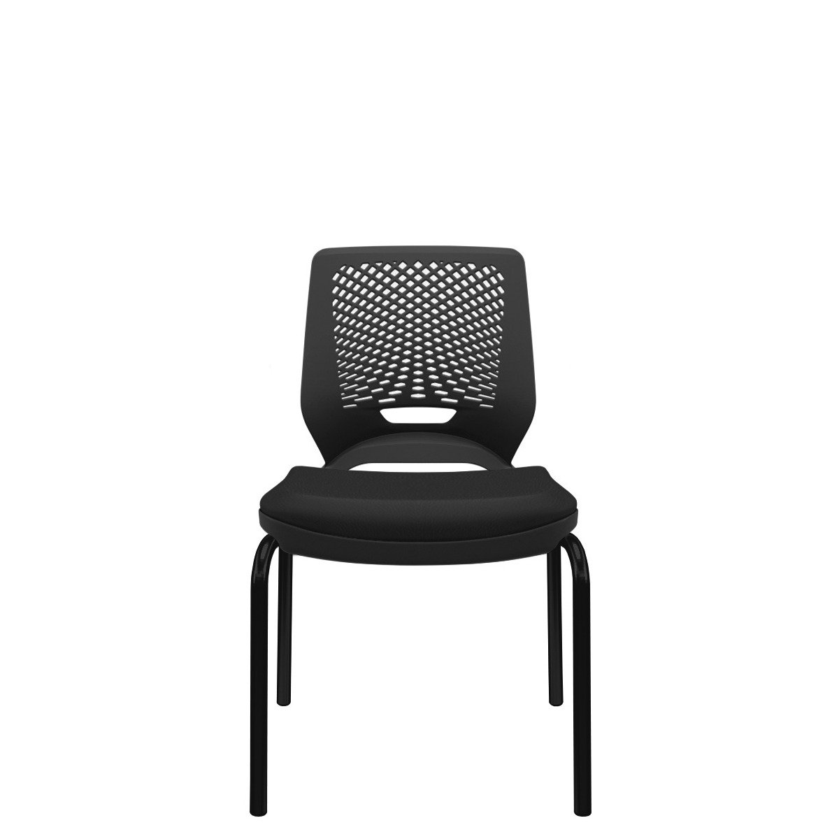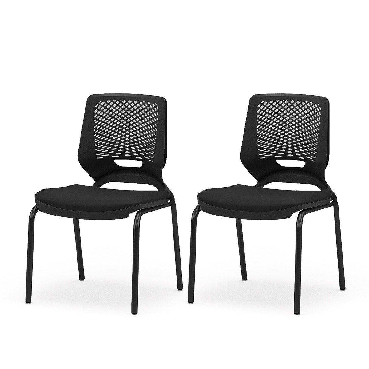 KIT 02 Cadeiras de Escritório Fixa Aproximação Beezi Base Preta Encosto Preto e Assento em Material Sintético (Couro Ecológico) Preto PLAXMETAL