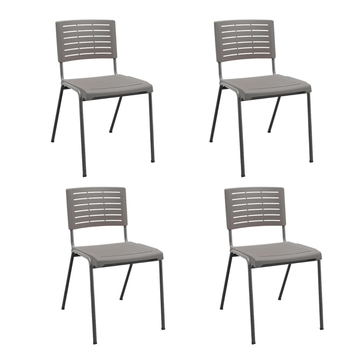 Kit 04 Cadeiras Fixa Multiuso Niala Plaxmetal NR17 Basalto (Cinza)
