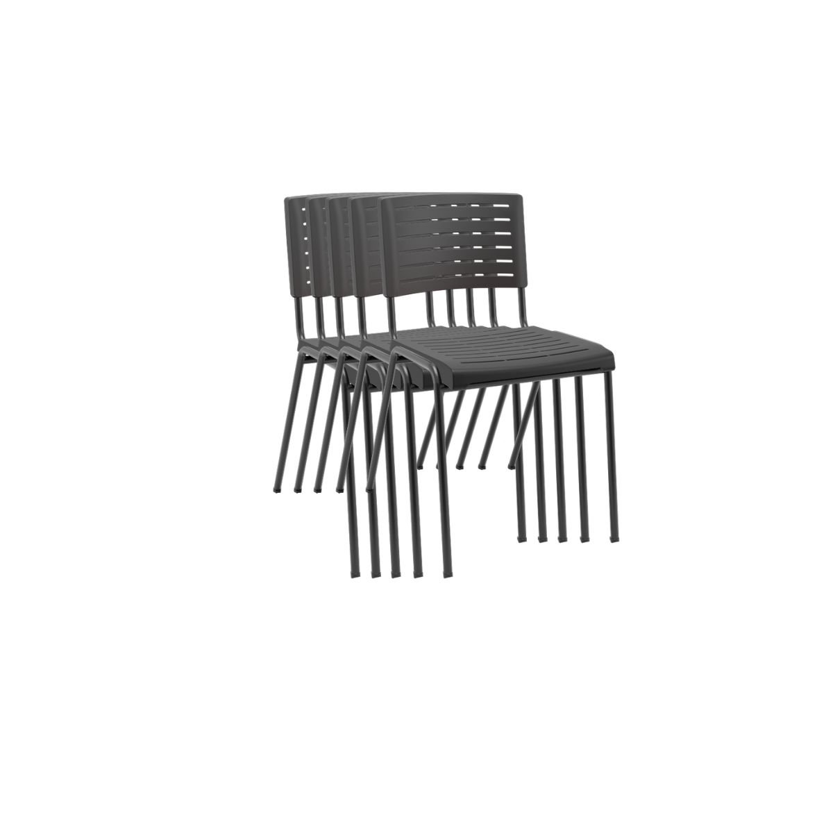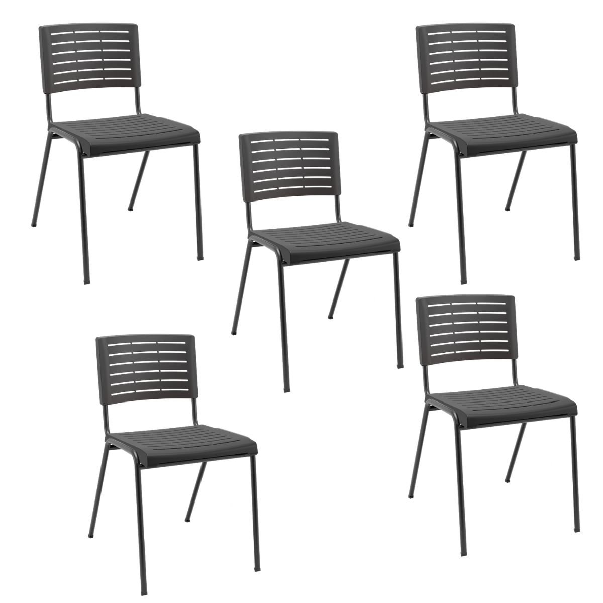 Kit 05 Cadeiras Fixas Escritório Escola Salão Igreja Multiuso Niala Plaxmetal NR17 Estrutura Preta e Assento e Encosto Preto